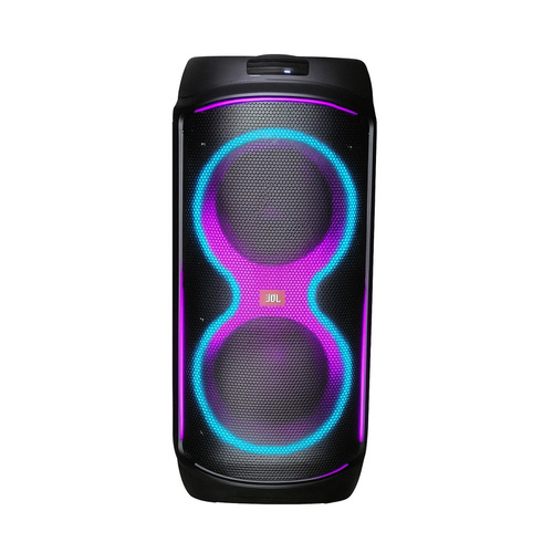 اسپیکر JBL PartyBox 8025 یکی از محصولات حرفهای و قدرتمند برند معتبر جیبیال ایران است که با طراحی زیبا، صدای شفاف و امکانات پیشرفته خود، گزینهای ایدهآل برای مهمانیها، دورهمیها و سفرهای شما محسوب میشود.این اسپیکر با برخورداری از دو سابووفر 8 اینچی و توان خروجی چشمگیر 18000 وات (PMPO)، صدایی شفاف و بیسی عمیق تولید میکند که برای فضاهای بزرگ نیز کاملاً مناسب است. همچنین وجود رقص نور LED در بخش جلویی دستگاه جلوهای چشمگیر و هماهنگ با ریتم موسیقی ایجاد میکند.از نظر اتصالات، PartyBox 8025 به بلوتوث، پورت USB، ورودی AUX، ورودی میکروفون بیسیم و قابلیت TWS مجهز است. این ویژگیها امکان پخش موسیقی از انواع دستگاهها و تجربه صدای استریو دوگانه را فراهم میسازد.همچنین به دلیل وجود باتری لیتیومی قابل شارژ، میتوانید بدون نیاز به برق، ساعتها موسیقی گوش دهید و در هر مکان از آن استفاده کنید. طراحی مدرن، وزن مناسب و قابلیت حمل آسان از دیگر نقاط قوت این مدل است. در مجموع، اسپیکر جیبیال مدل PartyBox 8025 انتخابی ایدهآل برای افرادی است که به کیفیت صدا، طراحی زیبا و امکانات کامل در یک اسپیکر قابل حمل اهمیت میدهند.